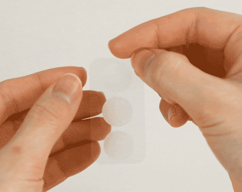 台紙の切り取り線に沿い、パッチの中央の突起部分に触れないよう 注意しながら取り出します。