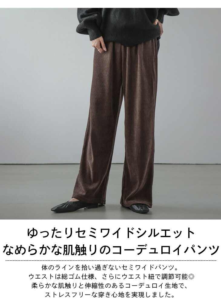 【半額クーポン対象】コーデュロイ セミワイド パンツ ウエストゴム ロングパンツ ボトムス レディース 伸縮性 おすすめ おしゃれ ブラック メール便 2024春夏新作 【lsbt304-480】【即納:1-5営業日】【送料無料】メ込3