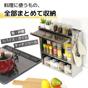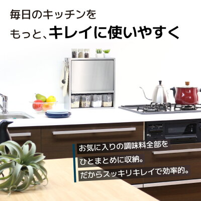 キッチンにすっきり美しくなじむ、ヘアライン風オールステンレス製のスパイスラック。