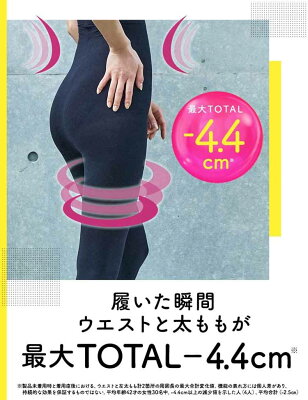 全メディキュット累計販売額(2013年7月〜2019年9月)●脱いだ瞬間、感動のスッキリ感!履いた瞬間、ウエスト太ももが最大TOTAL-4.4cm※製品未着用時と着用後における、ウエストと左太もも計2箇所の周囲長の最大合計変化値。