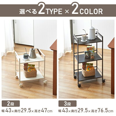 素材 本体:スチール(紛体塗装/マット仕上げ)キャスター:ABS樹脂 セット内容 サイドフレーム×2本、 棚×2枚、 連結パイプ×6本、 固定用ネジ×13個、 キャスター(ストッパー付き)×2個、 キャスター(ストッパーなし)×2個、 六角レンチ×1本 梱包サイズ [2段]46×30×4.6cm、重さ:2.22kg[3段]72.5×30.2×6.4cm、重さ:3.27kg 本体重量 [2段]約1.9kg[3段]約2.8kg メーカー 株式会社ドウシシャ(DOSHISHA) 備考 ※商品写真はできる限り実物の色に近づけるよう徹底しておりますが、 お使いのモニター設定、お部屋の照明等により実際の商品と色味が異なる場合がございます。