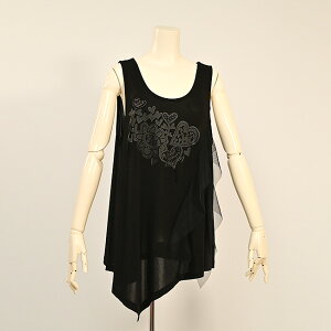 オレボレブラ OLEBOREBLA アルベロベロ ぶたさん 刺しゅう ハート & フラワー プリント アシメヘム トリアセテート ドライスムース タンクトップ 2024夏 M ブラック オイスター