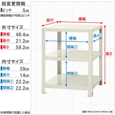 【P5倍5/15 13-15時&最大1万円クーポン5/9~16】 スチールラック 幅45×奥行20×高さ60cm 3段 40kg/段 スリムラック 軽量ラック 業務用 収納棚 スチール棚 物品棚 オープンラック 店舗 倉庫 整理棚 NSTR-123