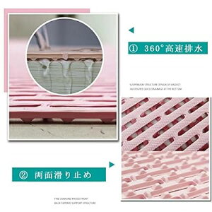 【両面滑り止め】風呂マット表面には突起した滑り止め粒子があり、背面には密集した排水柱があり、滑り止め効果は抜群です。