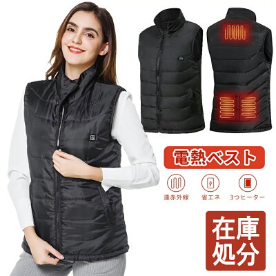 在庫処分 レディース 電熱 ベスト 防寒 スリム Vinmori シンプル おしゃれ 秋冬 発熱 電熱服 電熱ベスト 防寒ウェア 3つヒーター 3段階温度調整 USB給電 作業服 寒さ対策 水洗い可 省エネ アウトドア スポーツ 防寒 登山 ゴルフ 海釣り 外仕事