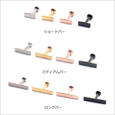 ショートバー、ミディアムバー、ロングバーと3サイズのバーモチーフと ラウンド、スター、ハート、スクエア、トライアングルの人気グラフィックモチーフが可愛い軟骨ピアス。