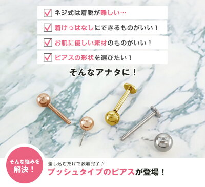 ◆オススメポイント◆ 差し込むだけで装着完了!ファーストピアスにも使える プッシュタイプピアスのストレートバーベル&ラブレットスタッド! ●ネジ式は着脱が難しい! ●着けっぱなしにできるものがいい! ●お肌に優しい素材のものがいい! などのボディピアスのお悩みを解決! ●不器用さんでもラクラク着脱! ネジ式じゃないから、ネジを回さなくてOK! 時間がなくてもオシャレを楽しみたい人や ネイルをしている人でも簡単に着脱できます♪