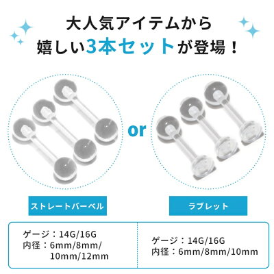 【3個セット】透明ピアス 16G 14G ボディピアス 軟骨ピアス 舌ピアス 金属アレルギー対応 キャッチ ラブレット 軟骨 ピアス 目立たない シークレットピアス 透ピ アクリル トラガス 舌ピ 口ピアス ヘリックス なんこつぴあす ボディーピアス ピアス Pierce